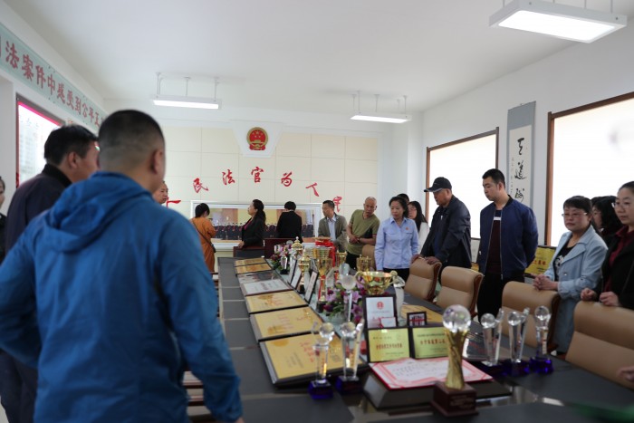 在荣誉室,人民陪审员们看到整齐陈列的奖杯、奖牌、证书,对中院获得国家级文明单位、全国优秀法院等殊荣赞不绝口。