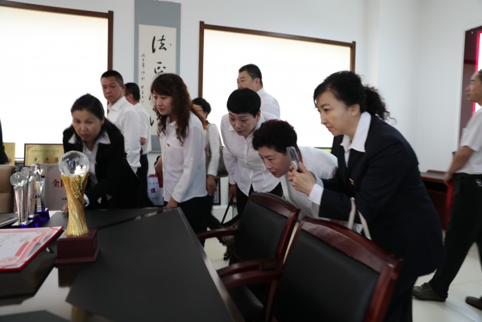 荣誉室内陈列的全国文明单位、全国优秀法院、全国文化建设示范单位等各项奖杯和奖牌,向大家展示出伊春中院的辉煌历程。
