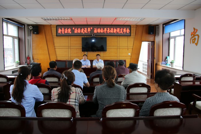 参观后,在法院二楼会议室召开了《新青法院“法治建设年”公开承诺》新闻发布会,政工科科长苏好爱宣读了向社会作出的四大项、七条公开承诺书,广泛接受社会各界监督,进一步扩大法院“法治建设年”活动的社会影响力和舆论声势。