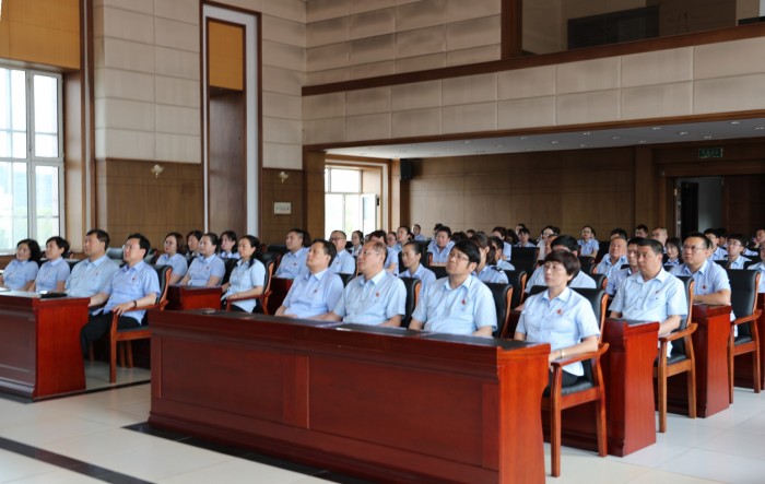 为进一步加强法院党员干部及干警党风廉政教育,深化“法治建设年”和深化作风整顿优化营商环境工作,提高党员干部及干警拒腐防变能力,筑牢思想道德防线,6月27日下午,伊春中院党组书记、院长韩日强及其他党组成员与全体党员干警共同观看了由伊春市纪委监委撰稿拍摄的警示教育专题片《囹圄之路》。