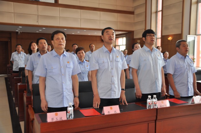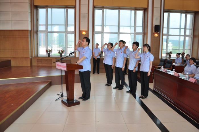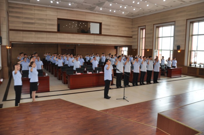 伊春中院党组书记、院长韩日强带领院机关全体党员干警重温入党誓词,誓词铿锵有力,字字掷地有声。