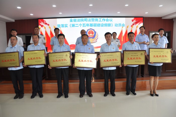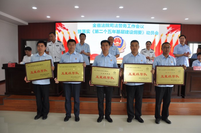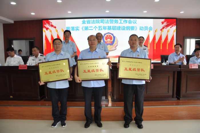 会议为佳木斯中院、伊春中院、大兴安岭地区中院司法警察支队“五星级警队”授牌,为荣获全省法院先进警队代表颁奖。