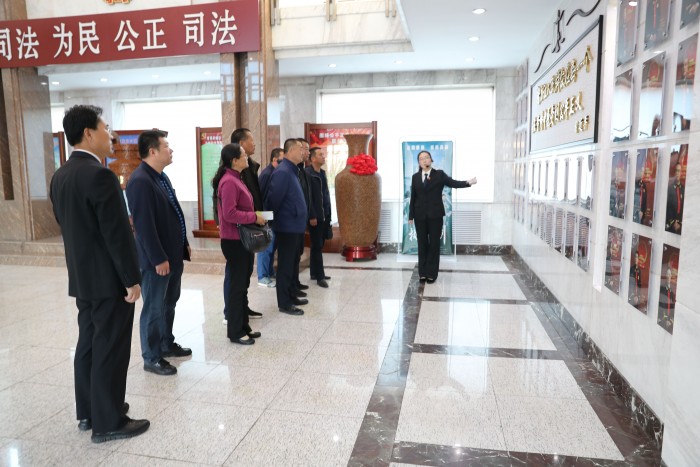 调研组一行在伊春中院党组书记、院长韩日强等人的陪同下,参观了伊春中院立案大厅、数字化法庭、法警支队、执行指挥中心等各办公区域和员额法官墙、荣誉室及文化展厅,直观感受伊春法院的基础设施建设、干警风貌和工作氛围。