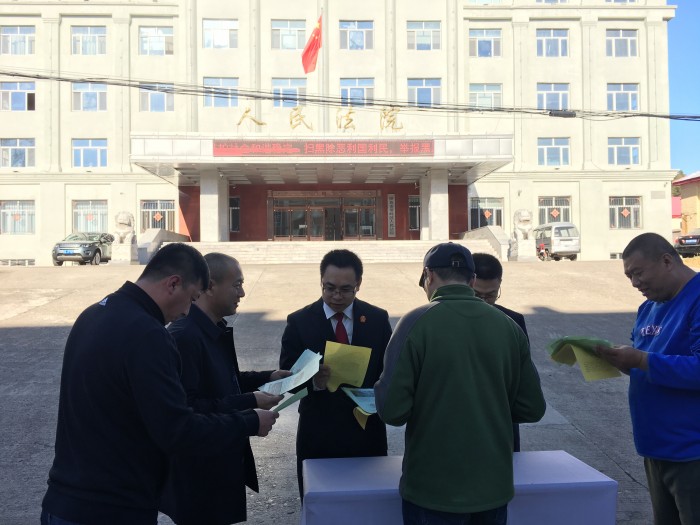 为进一步强化群众的法治意识,深入推进“扫黑除恶”工作开展。按照黑龙江省高级人民法院、伊春市中级人民法院的安排部署,伊春市带岭区人民法院组织开展了扫黑除恶主题宣传活动。