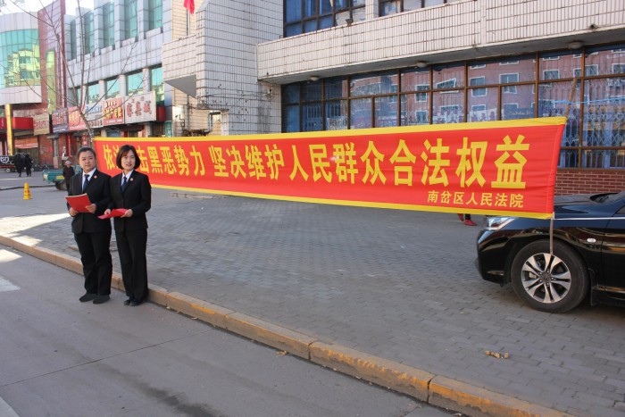 10月25日,伊春市南岔区人民法院开展以“依法打击黑恶势力,坚决维护人民群众合法权益”为主题的“扫黑除恶”专项宣传活动,进一步提高了人民群众对“扫黑除恶”工作的认识。