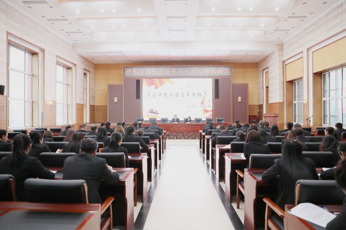 10月26日下午,伊春市中级人民法院党组书记、院长韩日强以讲课的方式为中院机关全体干警就如何以习近平新时代中国特色社会主义政治思想为指导作专题辅导。党组副书记、常务副院长单玉波主持党课并提出具体要求。