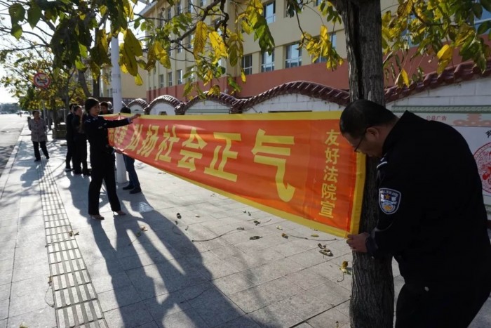 本次主题宣传采取悬挂横幅、滚动电子屏、设立咨询台、发放宣传资料等方式与“一网双微”法院自媒体、新媒体相结合,充分发挥专业优势,注重宣讲扫黑除恶法律法规及政策规定,并在《伊春日报》等主流媒体上刊登专题文章,充分扩大了宣传覆盖面和影响力,进一步激发人民群众对专项斗争的热情,努力提高群众对专项斗争的参与度。