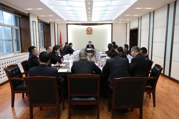 11月8日,伊春市中级人民法院党组召开中心组(扩大)学习会议,党组书记、院长韩日强主持会议并全文领学习习近平总书记在民营企业座谈会上的讲话,党组中心组成员参会并发言,中院各部门负责人列席学习会议。