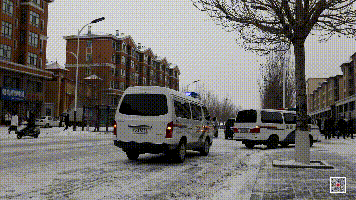 虽然雪越下越大,风越刮越大,但围观的群众仍集聚不散,为确保警戒区域和执行现场安全,执行干警身如磐石,岿然不动,他们握持警戒线的手冻木了,脸吹红了,腿站僵了,但依然保持着警容警貌,展现了伊春两级法院干警的坚强意志品格。