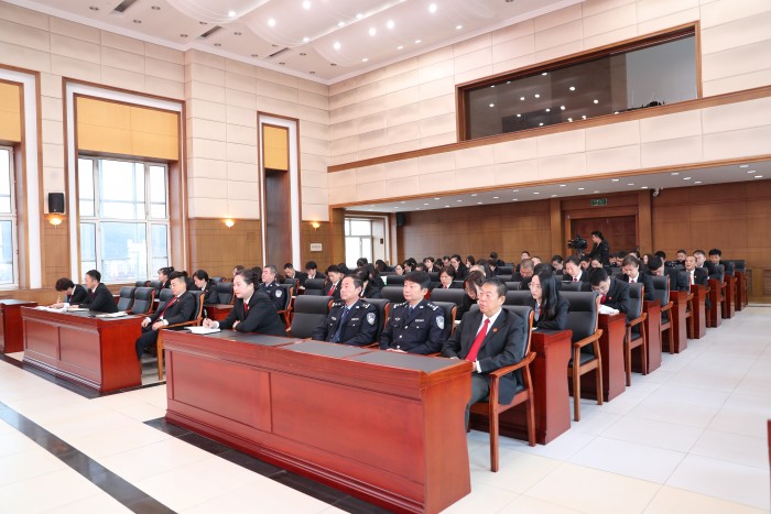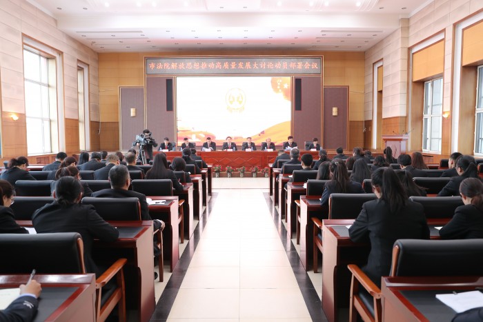 11月27日,伊春市中级人民法院召开解放思想推动高质量发展大讨论动员部署会议,院领导班子成员和全院干警参加会议,院党组书记、院长韩日强作动员讲话,院党组副书记、常务副院长单玉波主持会议。