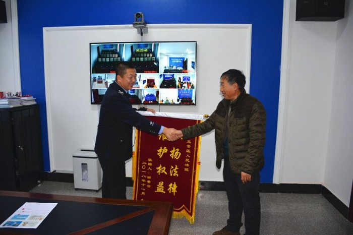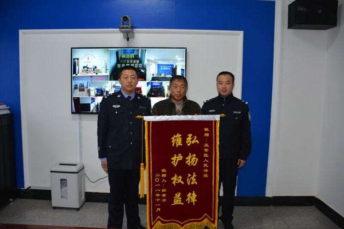 11月26日下午,申请执行人田某将一面“弘扬法律、维护权益”的锦旗送到伊春市五营区人民法院执行局,并握着执行局长宫大彬的手激动的说:“谢谢你们,是你们的辛勤付出,才使我的权益得到维护。”