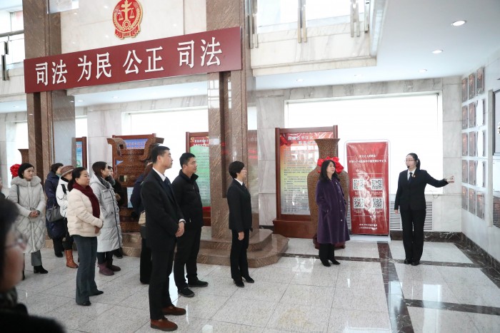 在讲解员的引导下,代表们先后参观了科技法庭、诉讼服务中心、法警支队、执行指挥中心、文化建设展厅等场所,对法院的工作环境和干警的工作风貌有了初步的了解。