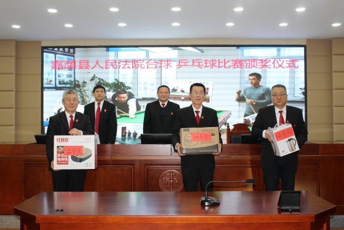 为丰富创建省级文明单位标兵活动的内容,展示法院和干警的精神风貌,嘉荫县人民法院举组织办了台球、乒乓球比赛,经过近一个月的赛程,比赛终于圆满落幕。 12月21日,嘉荫县法院在四楼多功能会议室举行台球、乒乓球比赛颁奖仪式。法院主要领导亲自为台球、乒乓球比赛的获奖者进行颁奖,并做了总结讲话,干警们热烈的掌声将此次颁奖活动推向高潮。