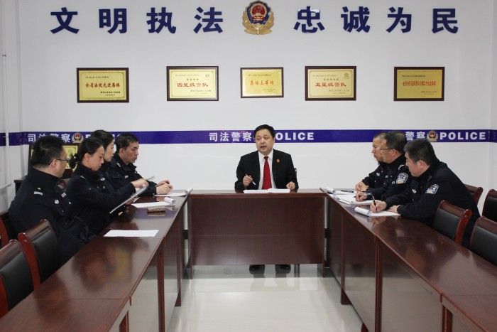 近日,伊春市友好区人民法院司法警察大队召开会议,传达学习伊春市中级人民法院文件精神和本院党组书记、院长丛喜武工作要求。会议强调,要以三项措施确保诉讼服务场所周边安全。
