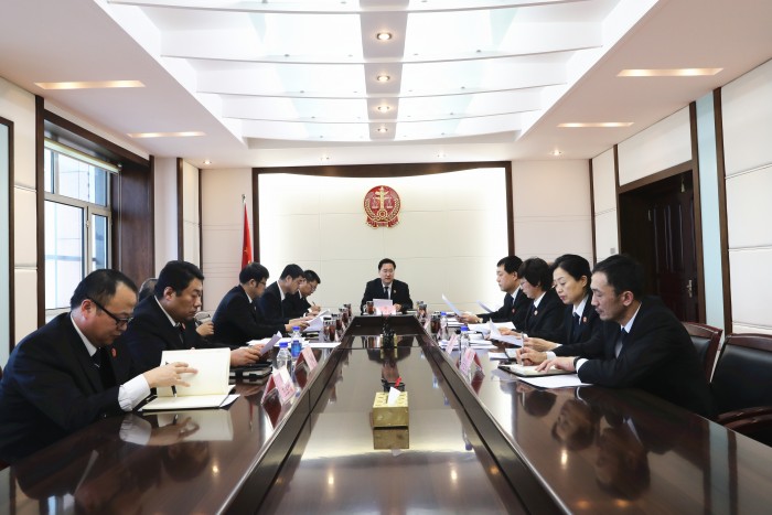 1月25日,伊春市中级人民法院召开党组中心组学习会议,学习习近平总书记在中央政法工作会议上的重要讲话精神和《中国共产党政法工作条例》。伊春中院党组书记、院长韩日强领学相关内容,党组班子成员参加学习并开展讨论交流。