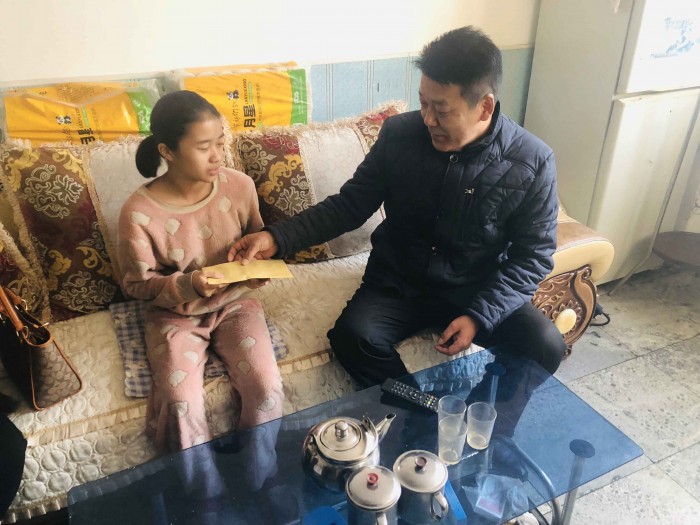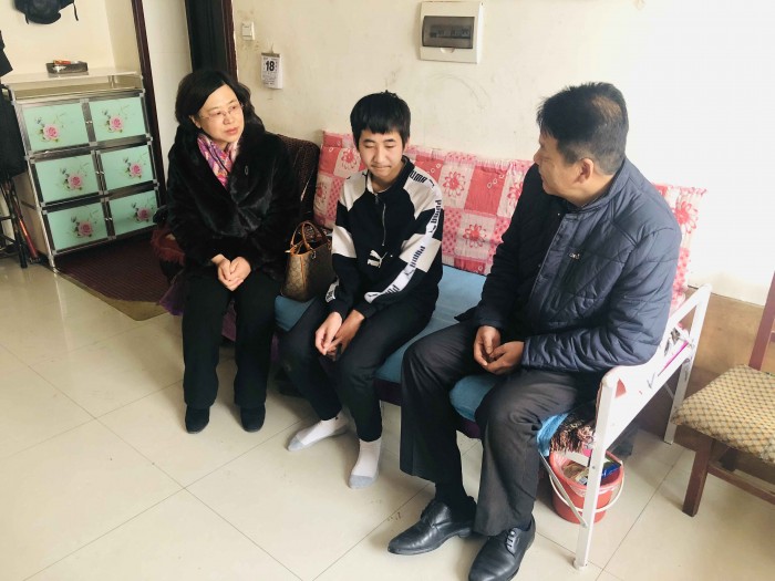 在张慧茹、焦德鹏二人家中,张金华与他们亲切交谈,仔细询问他们的学习和生活情况,并鼓励他们要好好学习,坚强乐观的面对生活中的困难。