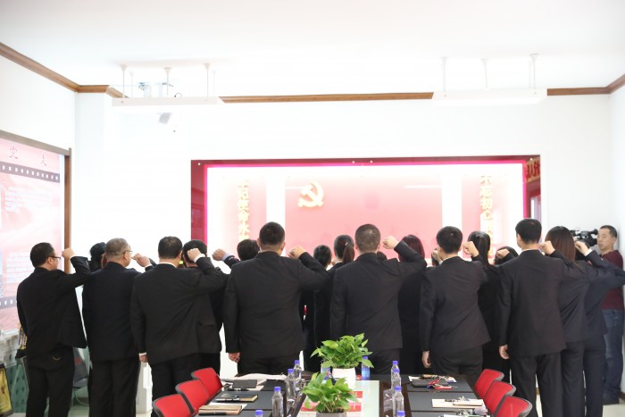 会前,为进一步加强党员干警的党性认识,牢固树立“四个意识”,增强“四个自信”,坚决做到“两个维护”,机关党委书记徐景伟带领机关党委委员,各党支部书记、委员庄严宣誓,众人面向党旗,神情肃穆,字字铿锵。