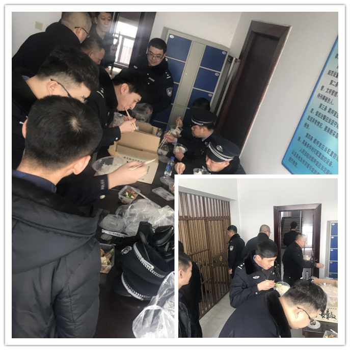 整个庭审过程到下午3点结束,7个小时的警务工作,法警们没有一句怨言,展现了法警队伍的良好政治素养和吃苦耐劳精神。休庭午餐时间,执勤法警分组交替用餐,既节省时间又保障了看押任务。