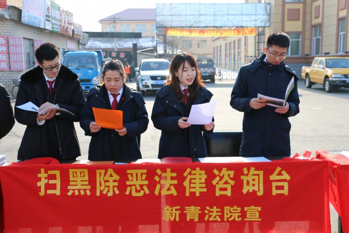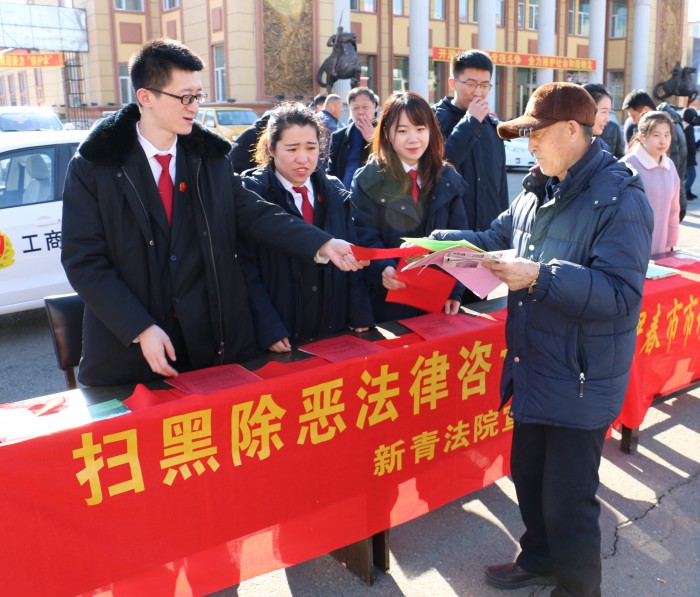 此次活动,新青区法院共发放宣传资料300余份,接受群众咨询50余人。今年是专项斗争承上启下的关键之年。要打好“攻坚仗”,新青区法院将进一步创新举措,唱响“正气歌”,提升专项斗争实效,进一步浓厚“扫黑除恶”氛围,全面推动专项斗争深入开展,切实提高了群众参与“扫黑除恶”专项斗争的意识,使“扫黑除恶”专项斗争深入人心、赢得民心。
