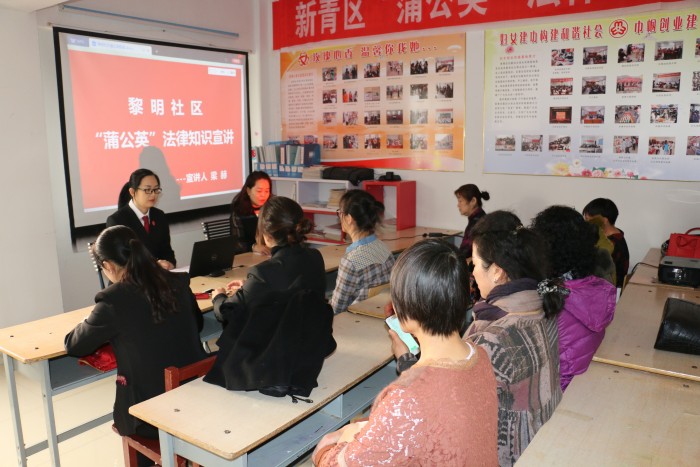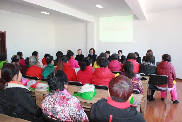 在新青区,法院诉讼服务中心副主任梁赫在黎明社区,针对妇女在生活中经常会遇到的婚姻纠纷、财产分割、继承纠纷、家庭暴力等问题,结合立案、审判中常见问题,深入浅出地讲解了《婚姻法》《继承法》《合同法》等有关法律对妇女权益保护方面的规定,引导妇女学会运用法律武器,捍卫自己的合法权益。