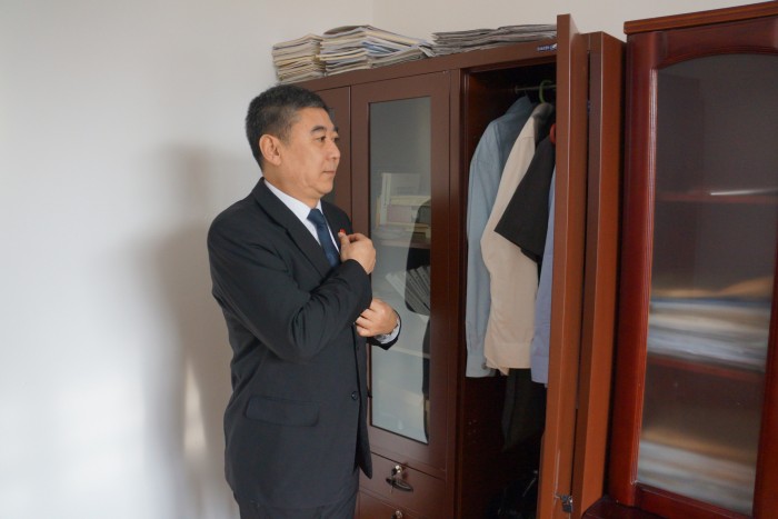 8:30,伊春市带岭区人民法院执行法官王庶来到办公室,与区电视台体验执行工作的记者匆匆握了握手后,迅速换上法院制服,对着镜子整理一下着装,开始了一天忙碌的工作。