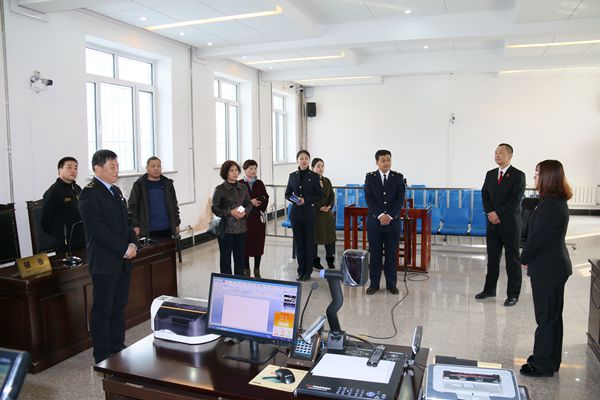 白润博的引导大家先后参观了诉讼服务大厅、法警监控室、科技法庭、新闻发布室、文化活动室等场所,详细地了解了法院的各项工作流程和文化建设。