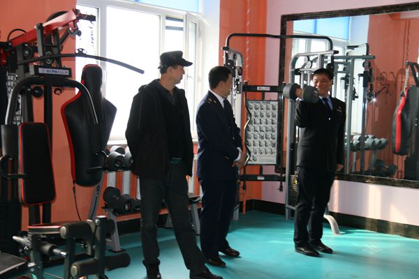 在健身室里,了解到法院鼓励干警在工作之余,开展健身娱乐活动,增强体魄,锻炼意志。