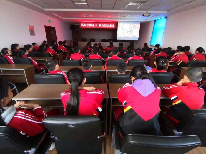 参观后,民庭法官助理赵春颖就如何保护未成年权益进行了法制知识讲座,她结合身边的案例,采取以案说法的教学方式,从家庭保护、社会保护、学校保护、司法保护四个方面进行讲解。同时,师生们共同观看了法制节目《迷失的青春期》。