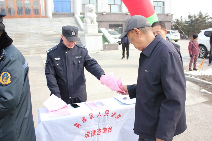 美溪区法院副院长皮振华带领8名法官和书记员来到集市,通过设立咨询台、悬挂横幅标语、发放“扫黑除恶”专项斗争明白卡、“扫黑除恶”宣传单等资料、现场解疑答惑等形式,从举报重点、举报内容、举报方式等方面向群众宣讲扫黑除恶相关政策法律知识,让群众知晓什么是黑恶势力、黑恶势力的危害以及“扫黑除恶”专项斗争工作的重要意义,向全社会有力传递了党中央彻底铲除黑恶势力及其“保护伞”的坚定信心和坚强决心,有效震慑了黑恶势力犯罪。