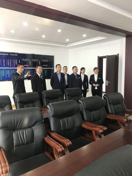 农商银行职工一行人依次参观了诉讼服务中心、执行指挥中心和审判法庭。通过参观,深切地感受到法院信息化建设的智慧高效和干警良好的精神风貌,增加了对法院工作的理解和支持。职工们还与民一庭庭长就有关“老赖”拒不还款、如何提升司法服务质量等问题展开讨论。