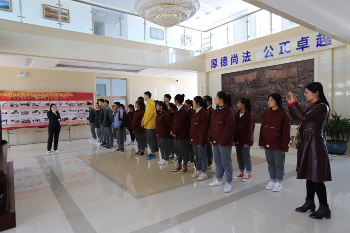 立案、诉讼、审判、执行等一系列司法审判业务名词充斥着学生们的大脑,让他们感受到了司法审判的庄严。“厚德尚法 公正卓越”的院训让大家对法院有了全新的认知。对“法”字起源的讲解让同学们了解了法字的内涵,领会了其中公平正义的理念。