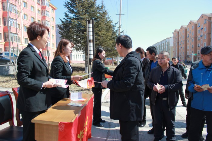 4月15日至16日,乌伊岭区法院利用两天时间,通过采用“固定+流动”相结合的宣传方式。由党组成员、副院长郝阳光和党组成员、政工科长孟祥利带队,积极开展扫黑除恶宣传活动,为过往的群众发放宣传资料300多份、解答有关法律问题20余条。
