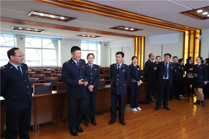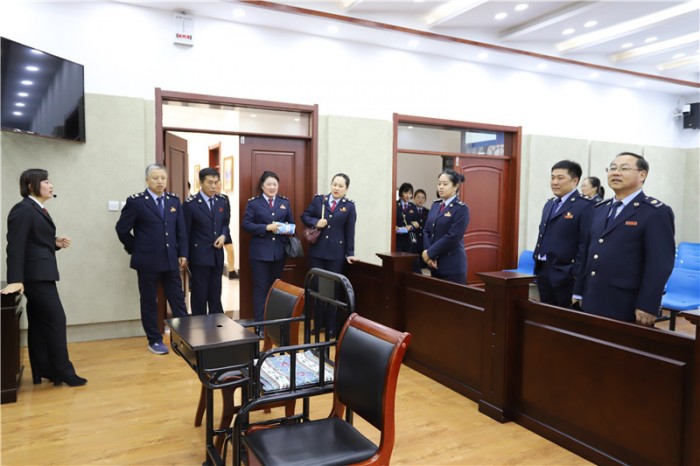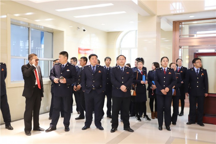 4月17日下午税务局30多名工作人员在张宇光局长的带领下走进伊春市嘉荫县人民法院,近距离感受司法工作,体验庭审流程,副院长张巍陪同参观。