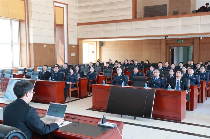 随后一行人在七楼大会议室观看了伊春中院执行攻坚宣传片并聆听伊春中院刑二庭法官葛琦题为《明确法律界限,预防职务犯罪》的专题讲座。以案释法,进一步增强公职人员防腐倡廉意识,筑牢思想道德防线。