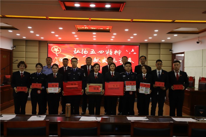 比赛结束后,该院领导为参赛选手们颁奖并作了总结讲话。郑建波副院长指出,本次比赛弘扬了五四爱国主义精神,增强了青年干警勇于担当,大胆逐梦的勇气和信心,希望广大青年干警珍惜青春,不负韶华,紧紧团结在院党组周围,为法院的发展进步贡献自己的力量,以优异的业绩庆祝新中国成立70周年。