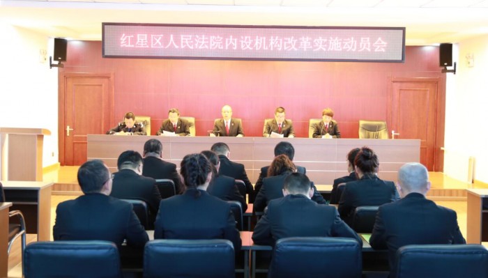 会议传达了最高人民法院政治部《关于规范内设机构改革后基层人民法院警队管理工作的通知》、省编办《关于人民法院内设机构设置批复意见的通知》、省法院《关于全省基层法院内设机构改革实施工作的通知》精神,并宣读了《伊春市红星区人民法院内设机构设置及职责》。
