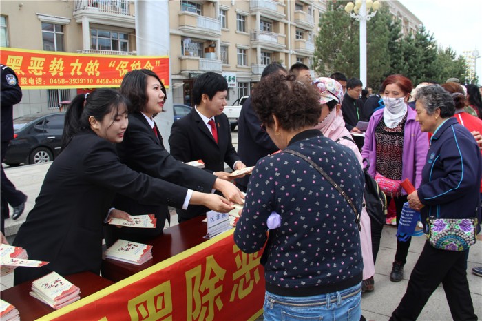 为深入推进扫黑除恶专项斗争向纵深开展,扩大扫黑除恶专项斗争宣传声势,营造更加浓厚的扫黑除恶宣传氛围,5月15日上午,伊春市乌马河区人民法院与区检察院、区公安局、区司法局等单位,在区文化广场联合开展扫黑除恶宣传活动。
