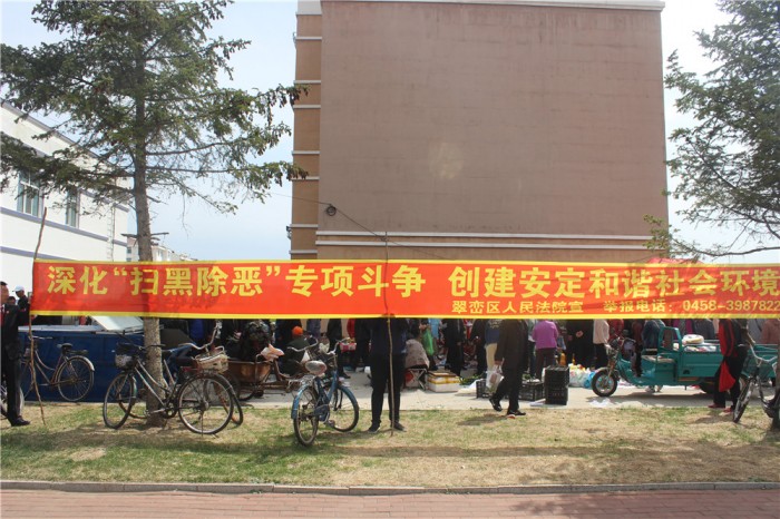 近日,为深入推进扫黑除恶专项斗争工作开展,进一步提高人民群众对扫黑除恶专项斗争的认识,伊春市翠峦区人民法院在每周一次的“农贸大集”,由常务副院长郭维罡带队开展扫黑除恶专项斗争宣传活动。
