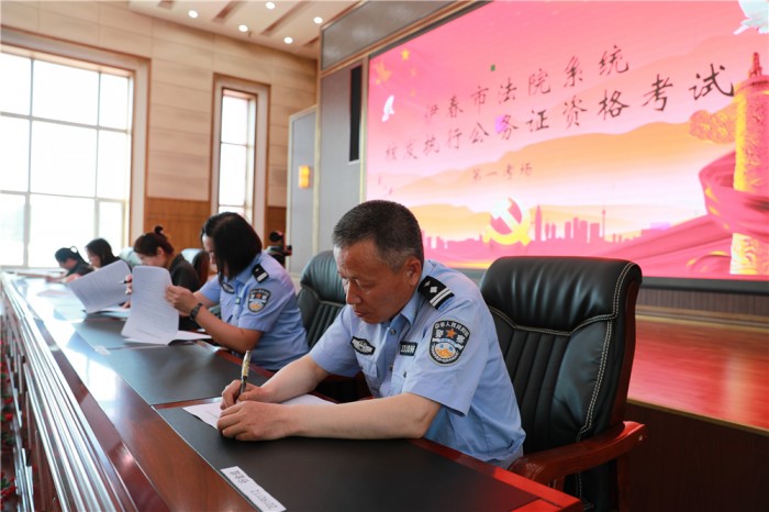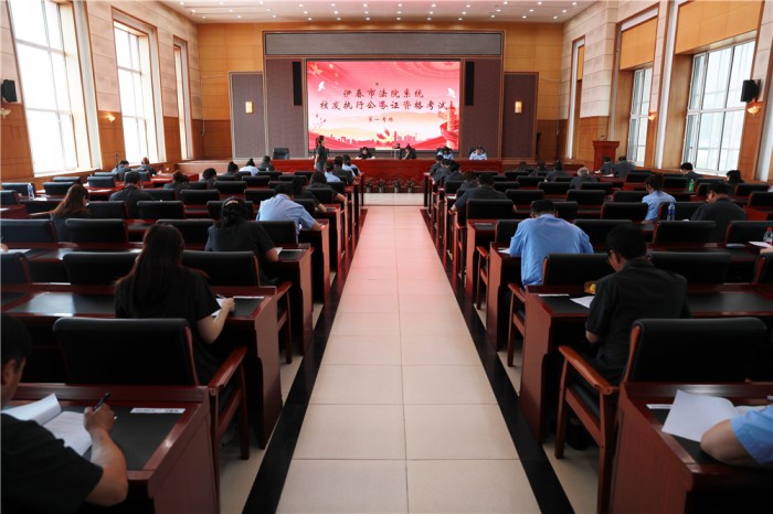 根据黑龙江省高级人民法院《关于全省法院新核发执行公务证人员考试的通知》要求,为提高执行水平、规范执行行为,伊春市中级人民法院于6月12日下午组织了全市法院系统核发执行公务证考试。全市两级法院共112名干警参加了此次考试。
