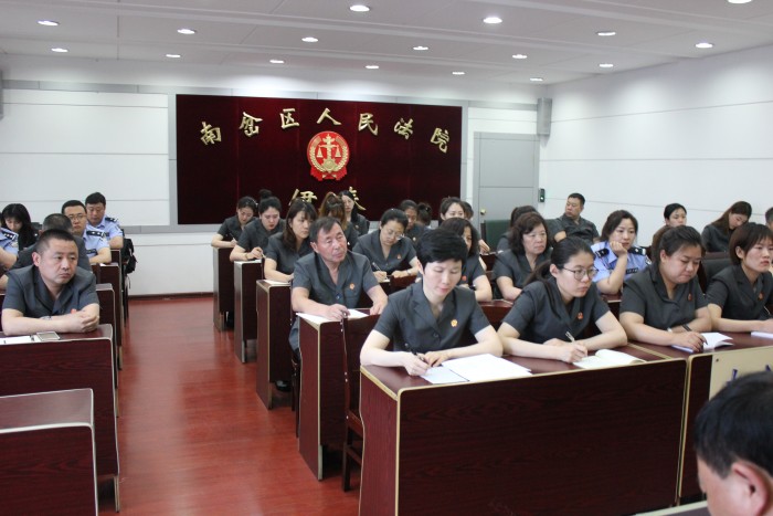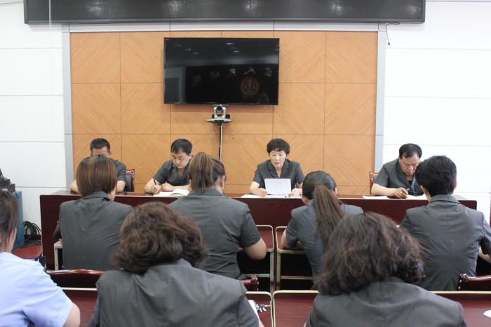 6月10日,伊春市南岔区人民法院召开扫黑除恶工作会议,党组书记、院长贺建梅主持会议并讲话,全体干警参会。