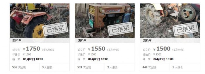 根据最高院关于司法拍卖必须全部上网的要求,以及网上询价的最新规定,进行统一网上选定评估机构,网上拍卖。本院将没收的作案工具六台四轮车和一台拖拉机依法进行评估,评估价为15,000.00元,以评估价依法进行拍卖,七件拍品全部一拍成交,报名人数16人,参拍人次36次,成交金额17,500.00元,成交转化率100%,溢价率16.67%。及时有效将没收财产变现,上缴国库。