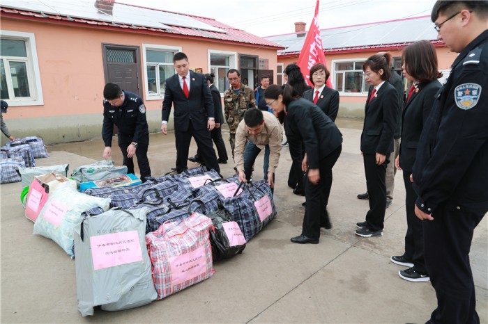 清晨,一辆满载着伊春中院干警爱心捐赠物品的车便早早地冒雨出发前往百公里外的石长村,党组成员、政治部主任赵冶萍,机关党委书记徐景伟带队同车前往。