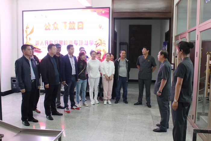 在诉讼服务中心,卢涛向参观人员发放了扫黑除恶明白卡。随后,讲解员向大家详细介绍了当前扫黑除恶专项斗争的态势、进度、何为黑恶势力、什么是重点打击对象等扫黑除恶相关知识及立案、诉讼等流程和“打官司不求人”的便民利民措施。