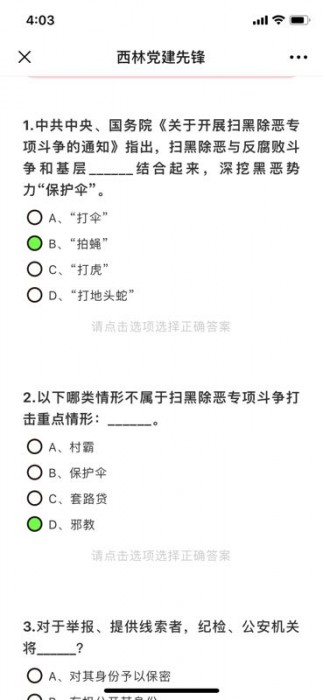 西林党建先锋微信公众号平台发布的扫黑除恶专项斗争网上知识测试主要围绕习近平总书记在扫黑除恶专项斗争工作中的系列重要讲话精神,中央、省市区委关于扫黑除恶专项斗争工作的会议精神,扫黑除恶专项斗争的目标、意义、表现、重点、举报方式以及相关法律知识等内容进行测试。