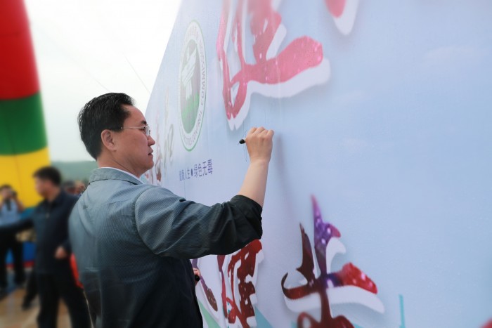 市级领导张国军、刘天云、蒋建国、韩日强出席开幕式,并与徒步人员一同在拒毒墙上签名。