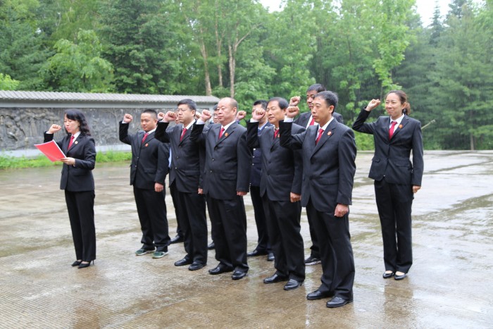 在抗联英雄纪念碑前,由总支书记关雪莲领誓,全体党员干警面对鲜红的党旗,举起右拳,庄严宣誓:我志愿加入中国共产党,拥护党的纲领,遵守党的章程……,铿锵有力的声音在林中回荡。干警们纷纷表示,要铭记革命精神,继承和发扬革命先辈的优良传统,不忘初心,坚定信念跟党走,努力为审判事业发展贡献新的力量。