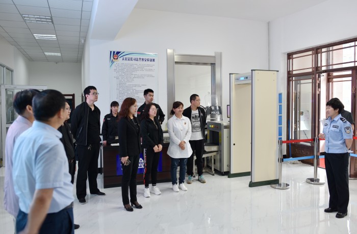 在讲解员的带领下,受邀人员一一参观了诉讼服务中心、科技审判法庭、法警队装备室、执行指挥中心等场所。