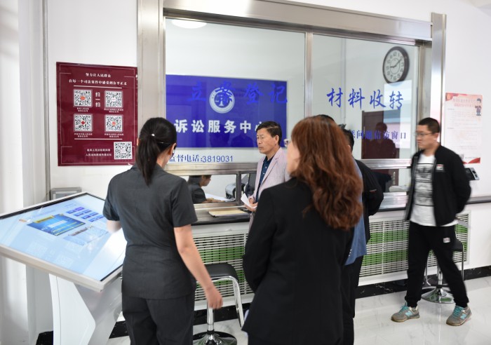在诉讼服务中心,大家对案件查询机表现出了极大的热情和兴趣,通过讲解员的介绍,大家了解到这是五营区法院今年6月初正式投入使用的,也是该院积极践行“打官司不求人”庄严承诺的又一新举措。当事人只需在自助机上轻刷身份证,即可自助查询案件办理情况,案件承办人、合议庭成员、开庭时间、案件进度、流程节点等信息一目了然,来访群众通过触摸查询机还可以查询到常用法律法规、诉讼服务指南、诉讼风险提示等,不仅方便了群众诉讼,也极大节约了司法资源。