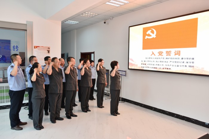 活动中,党组书记、院长曹雪飞领誓,全体党员面对党旗,高举右手庄严宣誓:“我志愿加入中国共产党,拥护党的纲领,……为共产主义奋斗终身,随时准备为党和人民牺牲一切,永不叛党!”。