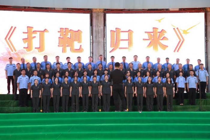 旋律响起,大家放声歌唱。《打靶归来》的愉快、轻松,《中国军魂》的坚定、高亢,在大家的演唱下展现的淋漓尽致,引得台下观众阵阵掌声和叫好声。